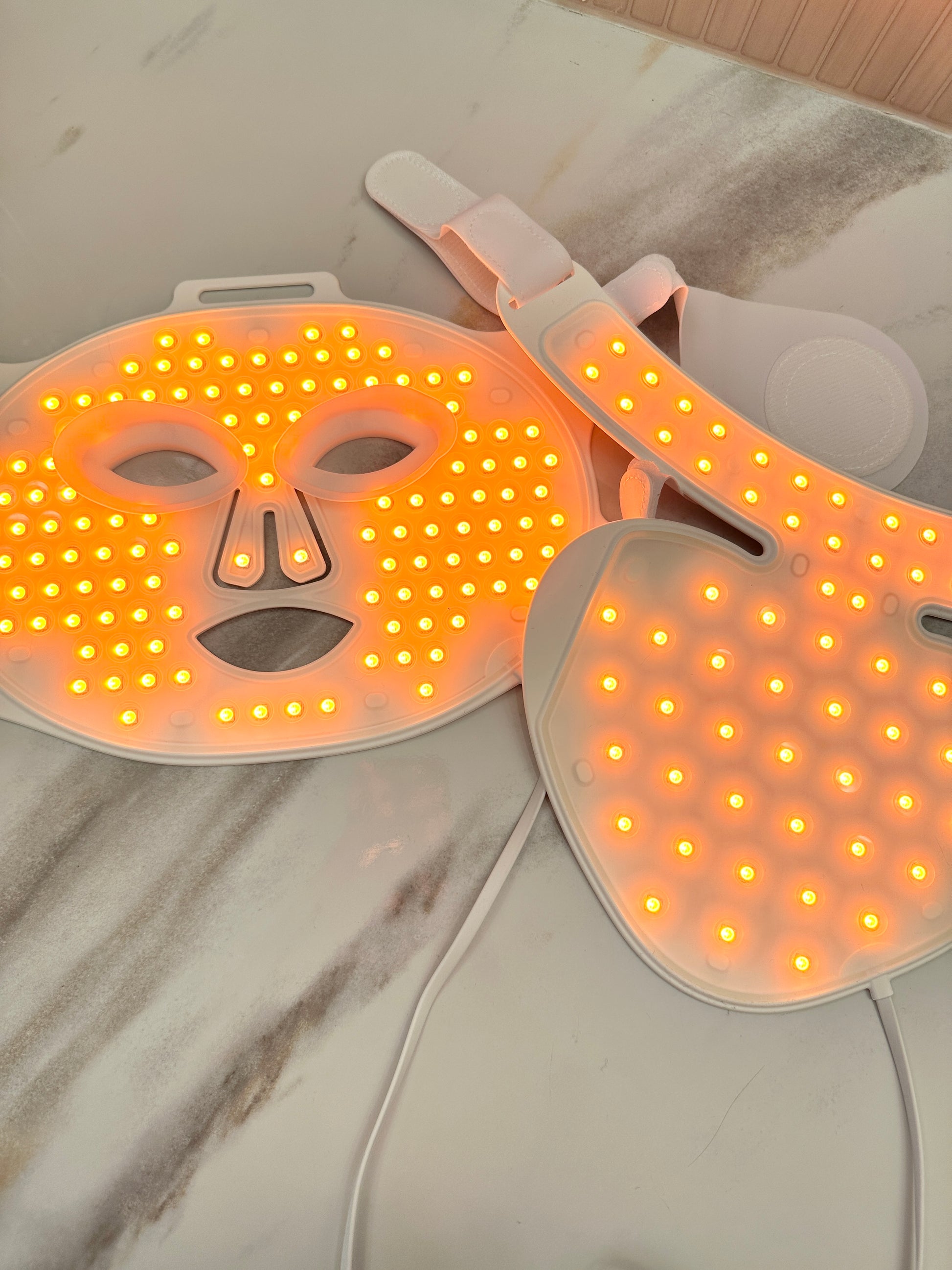 Powered by 186 precision LEDs — 122 in the facial mask and 64 in the neck/chest attachment — it delivers targeted wavelengths to rejuvenate, repair, and restore your skin’s natural glow.